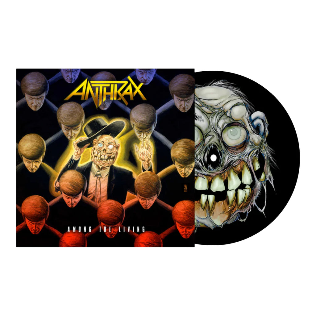 Vinyl Picture Disc LP of Anthrax's album 'Among The Living,' featuring new sleeve artwork by JG Jones and picture disc artwork by Greg Nicotero.