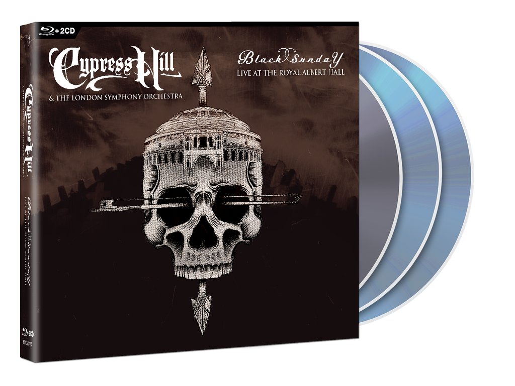 On July 10, 2024, Cypress Hill teamed up with the London Symphony Orchestra, conducted by Troy Miller, to present a reimagining of their quadruple-platinum-selling Black Sunday album in its entirety, featuring unique orchestral arrangements inspired by the original recordings of DJ Muggs, along with a number of the band’s songs from their extensive catalog. This landmark event merges the worlds of classical music and hip hop, adding soaring orchestrations to such classics and fan favorites including “Illusions,” “I Ain’t Goin’ Out Like That,” “(Rock) Superstar,” “Insane In The Brain,” and many more. “Black Sunday Live At The Royal Albert Hall” includes the concert film on DVD along with 2CDs featuring the audio from the show.
